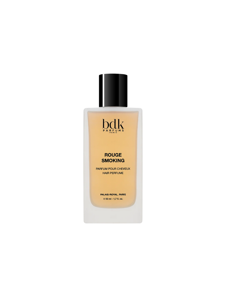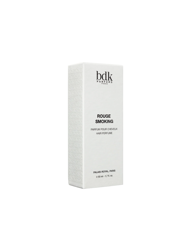 Fruity, ambery, and spicy, Rouge Smoking draws inspiration from the Pigalle district, blending sweetness and vivacity. This hair perfume delicately scents and softens, leaving a silky effect. Enriched with silk proteins, the formula improves hair hydration, elasticity, and imparts a glossy finish. Silk, long celebrated in Asia for its hair care benefits and known as the "princess" of fibers, provides a crystalline structure that enhances hair hold. Usage: Apply to the mid-lengths and ends of the hair.